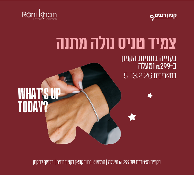 קונים בקניון ב-299 ש"ח ומעלה ומקבלים צמיד טניס נולה במתנה! (ביום אחד, ניתן לצבור כמה חשבוניות)🤩